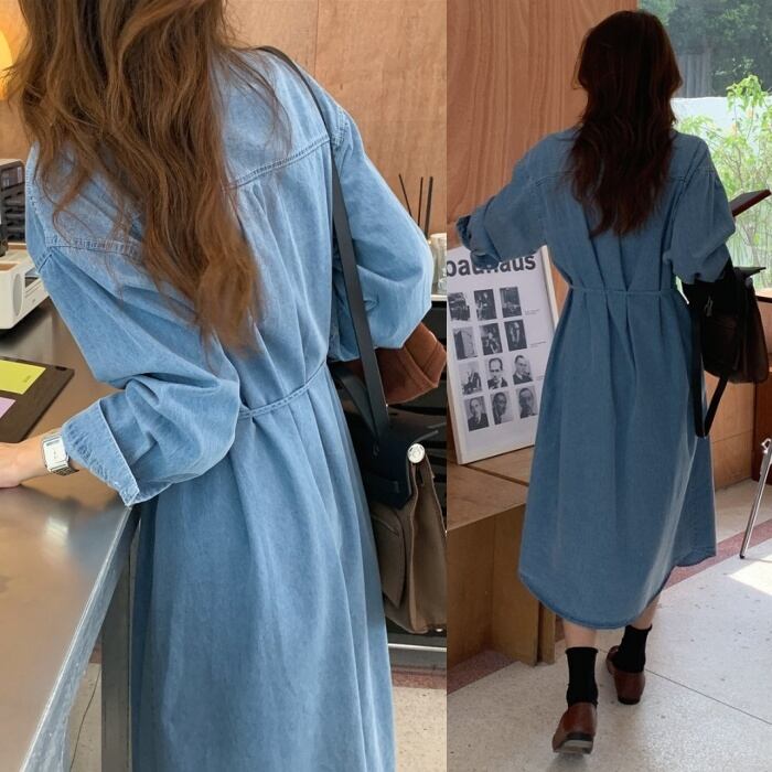 春先に着たい、爽やかな印象のデニムシャツワンピース。