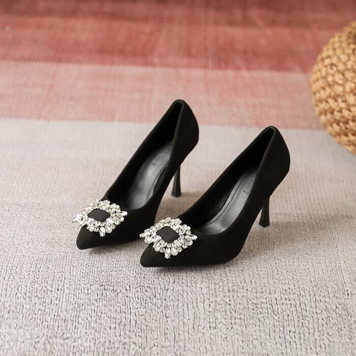 煌めくビジューをあしらい、華やかに仕上げたパンプス。