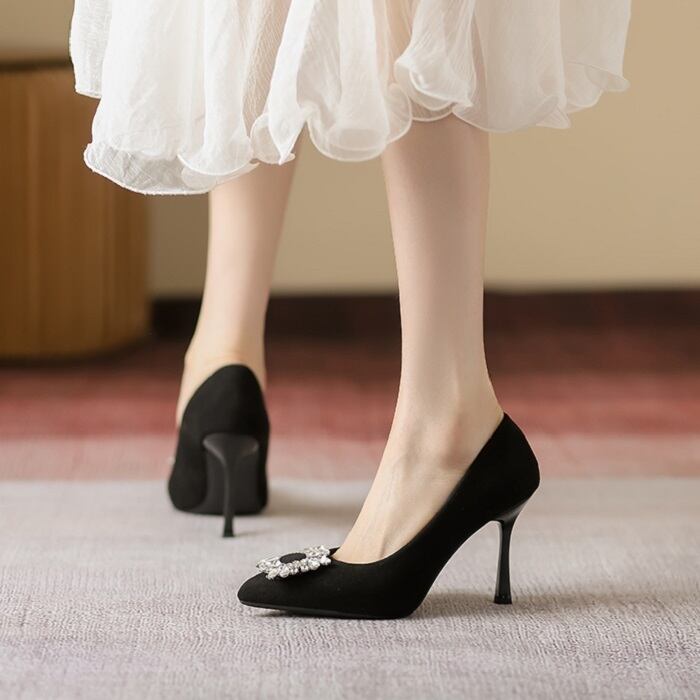 エレガントなポインテッドトゥとピンヒールが、