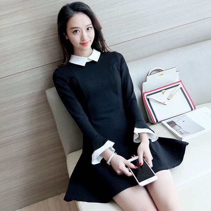 トレンドの襟付き、控えめなベルスリーブが女性らしさを高めます。