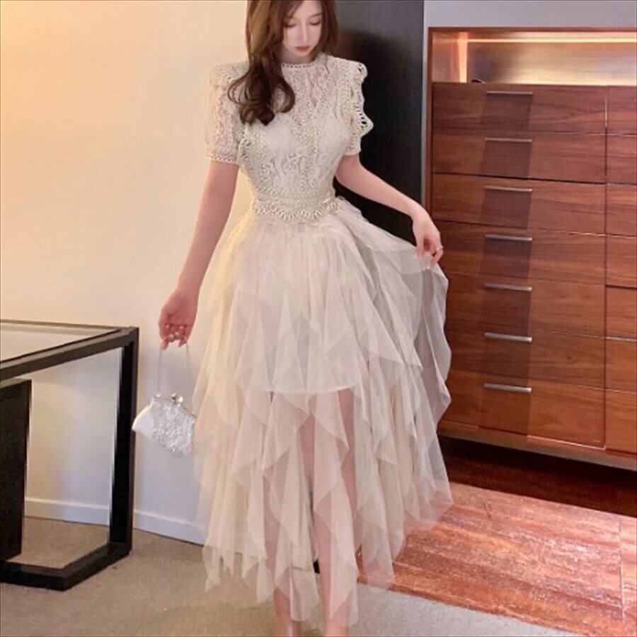 ふんわりとしたフォルムが可愛いレースドレス♡