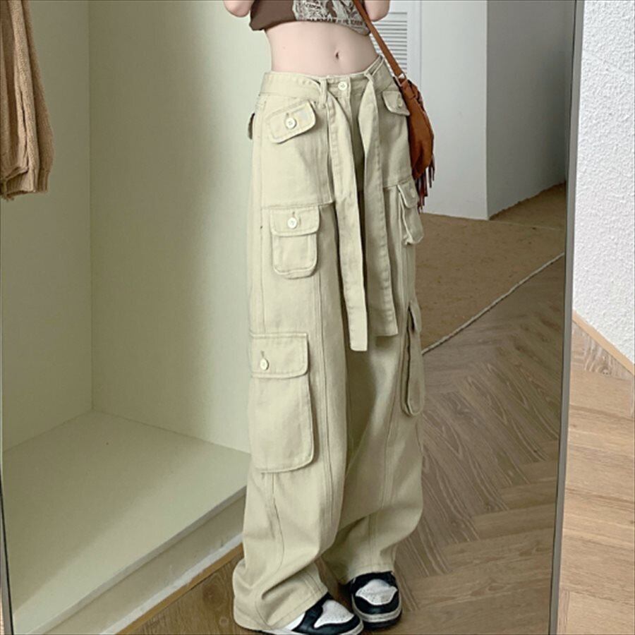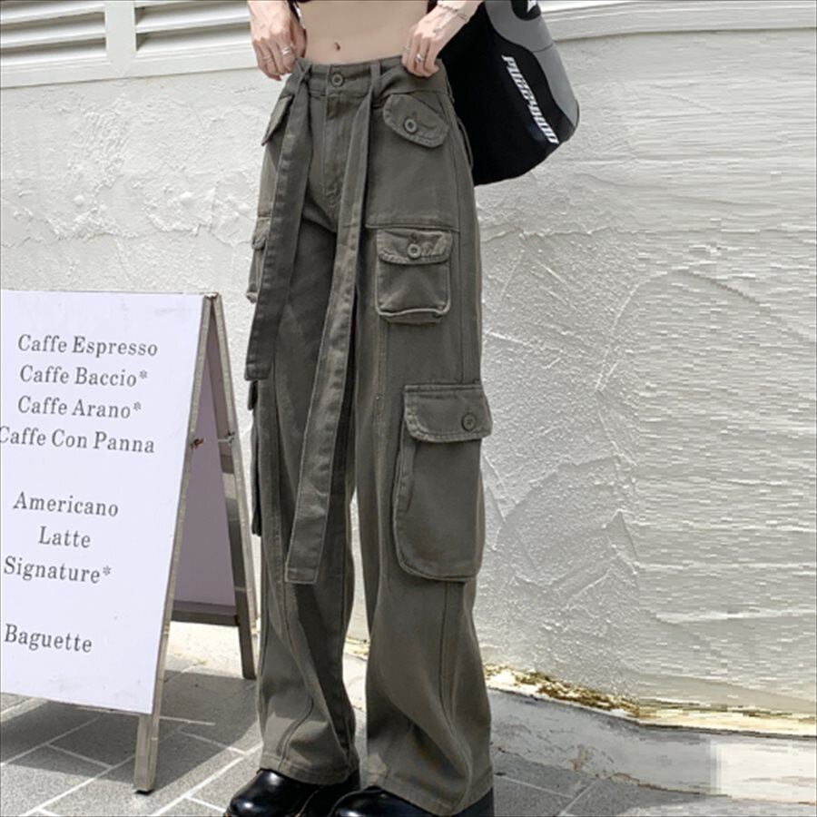 アースカラーのカーゴパンツ。