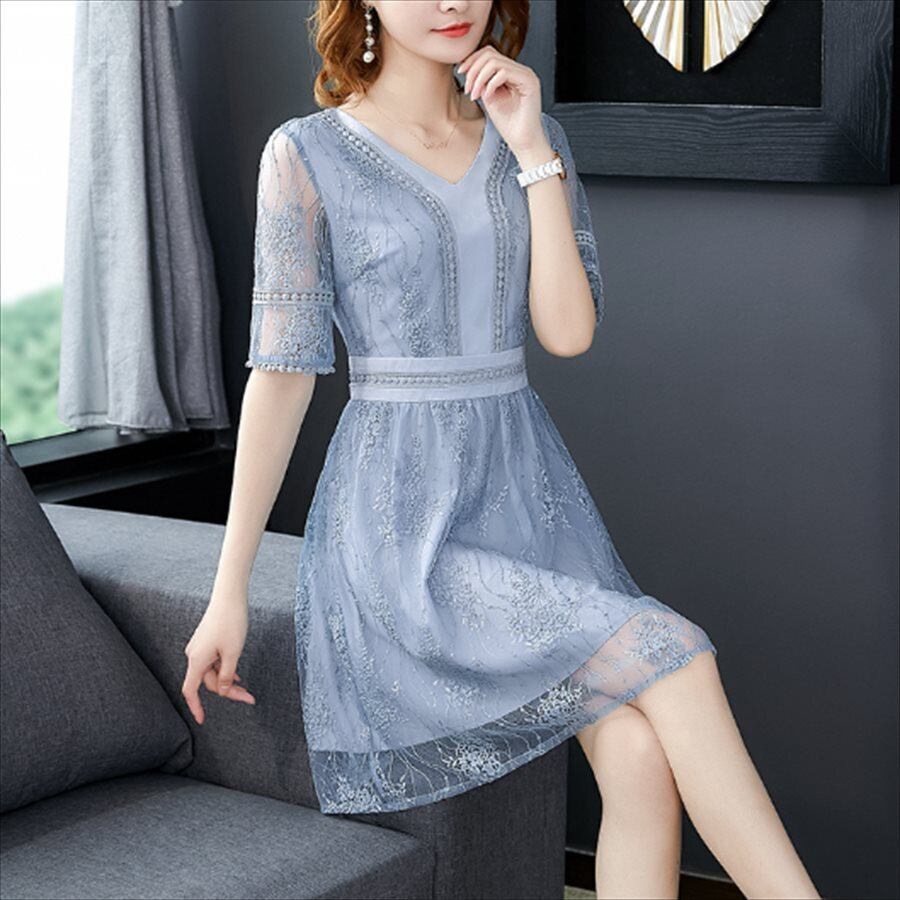 花柄レースのワンピースドレス。