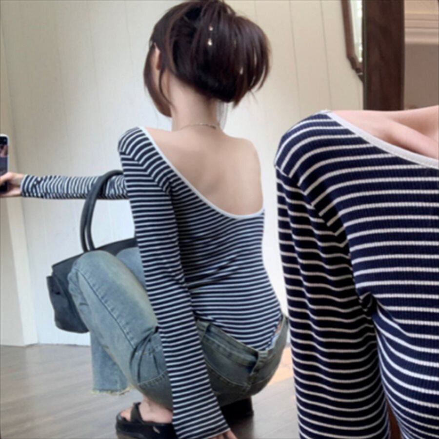 ボーダー柄の長袖Tシャツ。