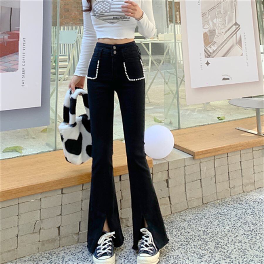 デニム生地のフレアパンツです。