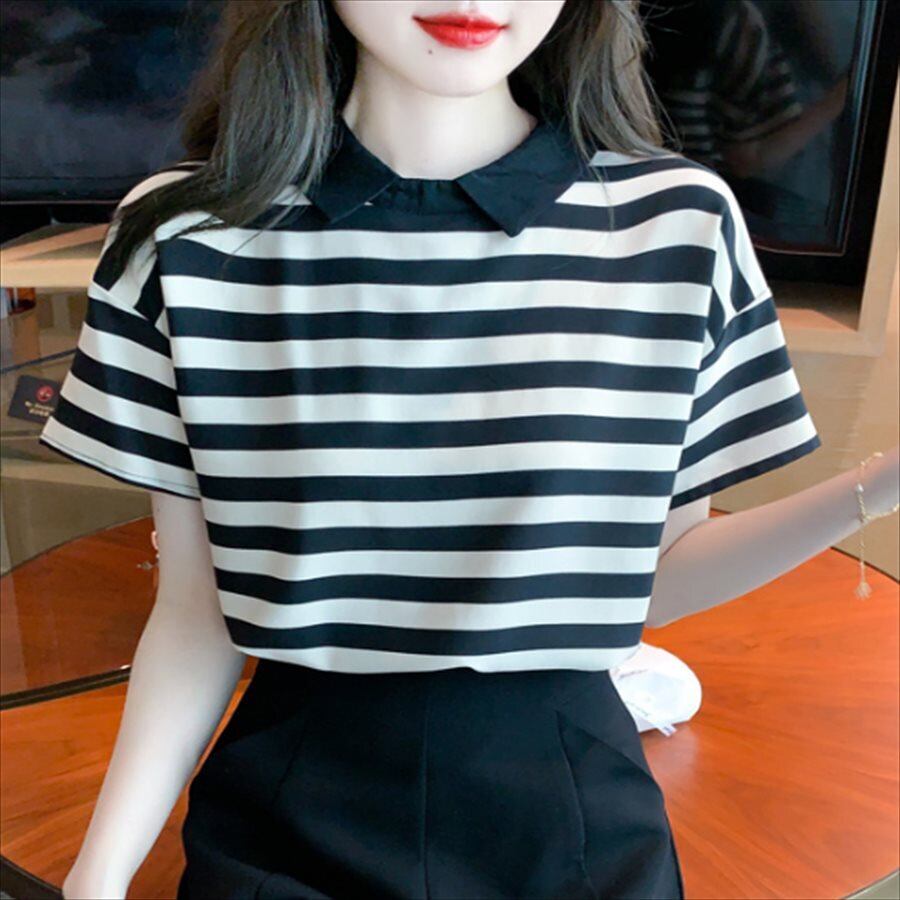ストライプ柄の半袖Tシャツ♡