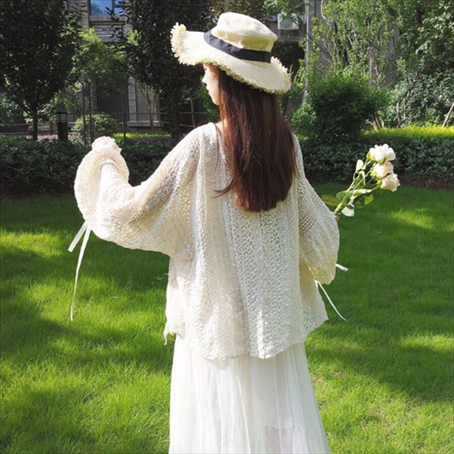 ホワイトはフレアスリーブ、ベージュはランタンスリーブになっております。