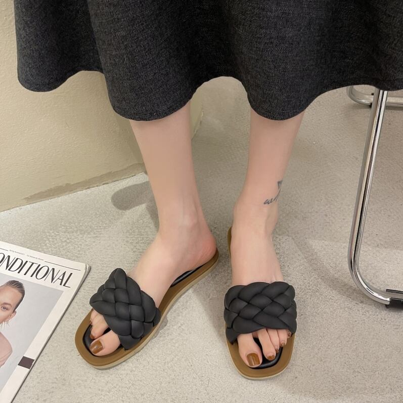 柔らかな編み込みデザイン可愛いサンダル!