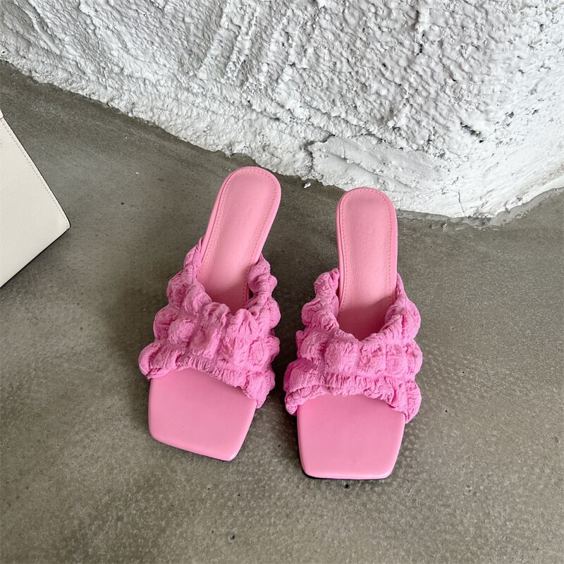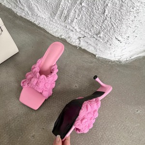 立体感のあるデザインが女性らしく可愛いスクエアトゥサンダル
