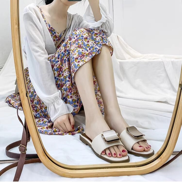 大きなパーツが特徴のフラットサンダル!