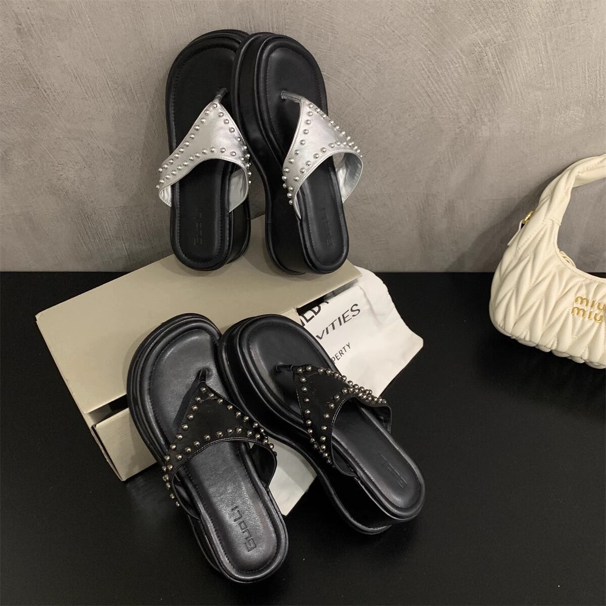 足元に個性的な印象をプラスするスタッズステッチサンダル!