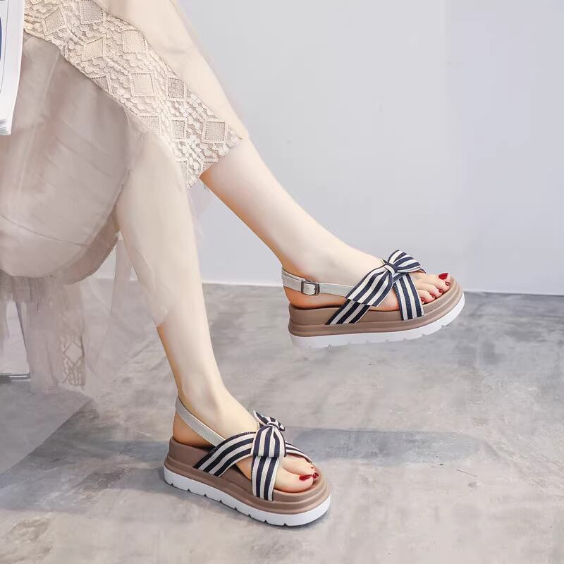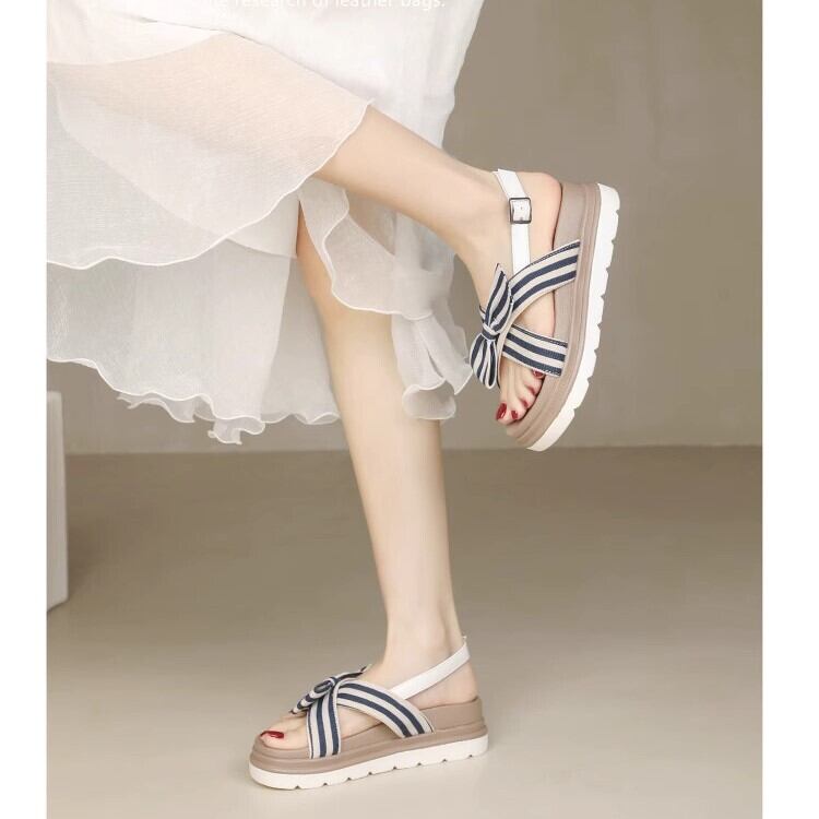 トレンドのストラップデザインに甘くなりすぎないリボンで大人レディな足もとに。