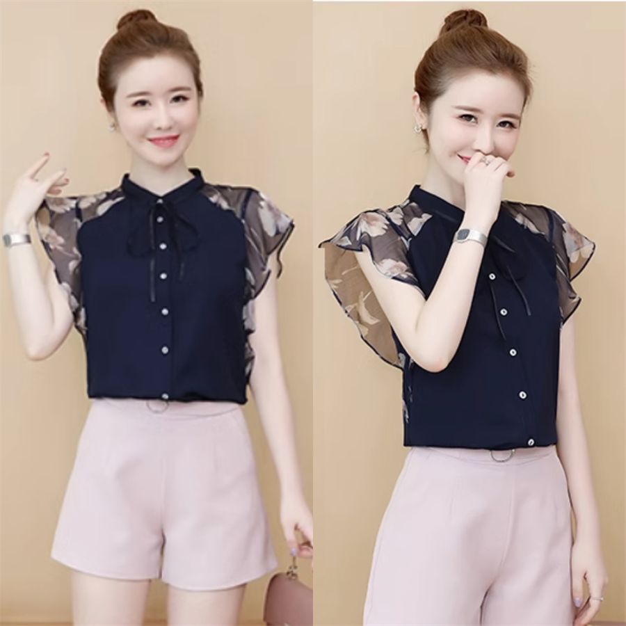 シースルースリーブで軽やかな印象。
