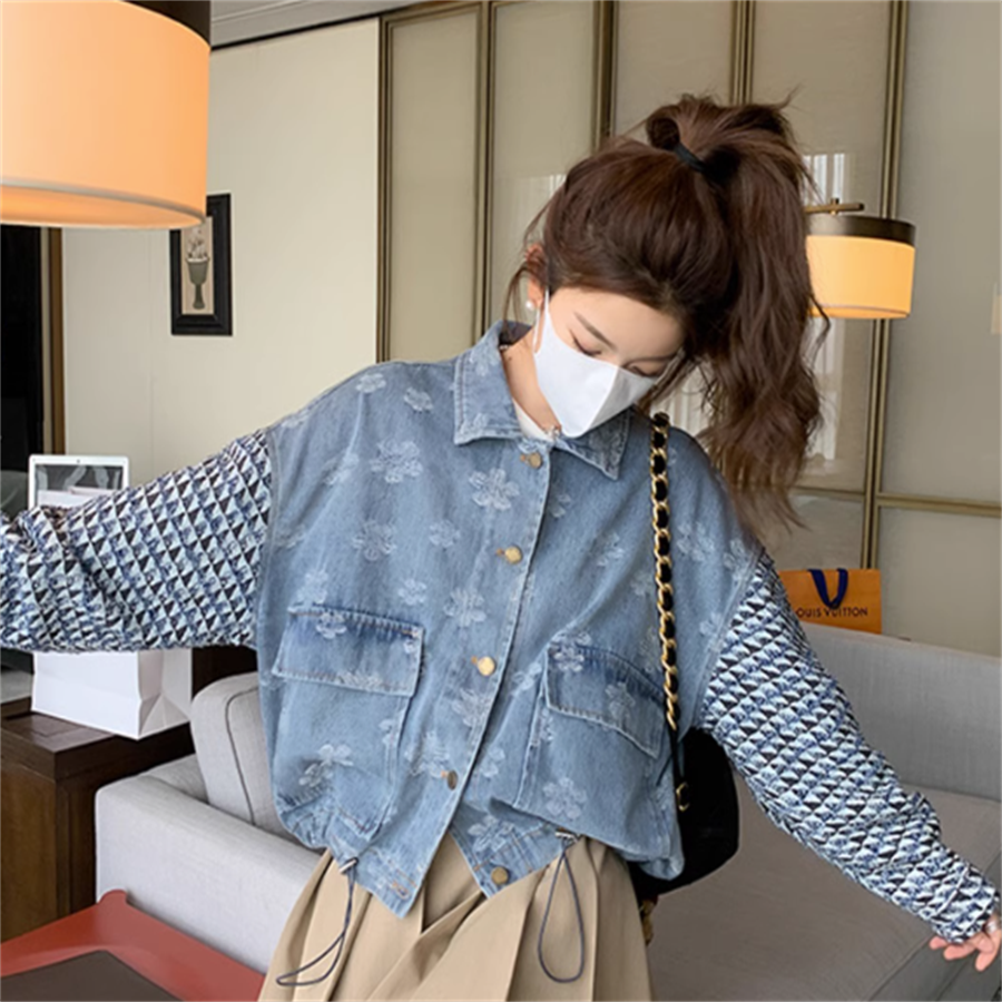異素材ドッキングのデニムジャケットです。