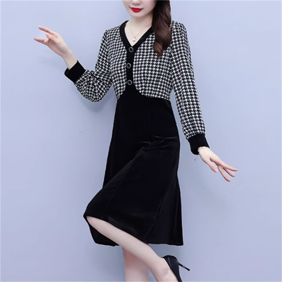 千鳥格子柄スカート&長袖ブラウスの2点セットです。