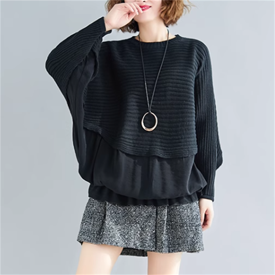 異素材ドッキングのニットセーターです。