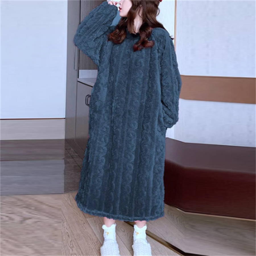 フリース素材のマキシワンピパジャマです。