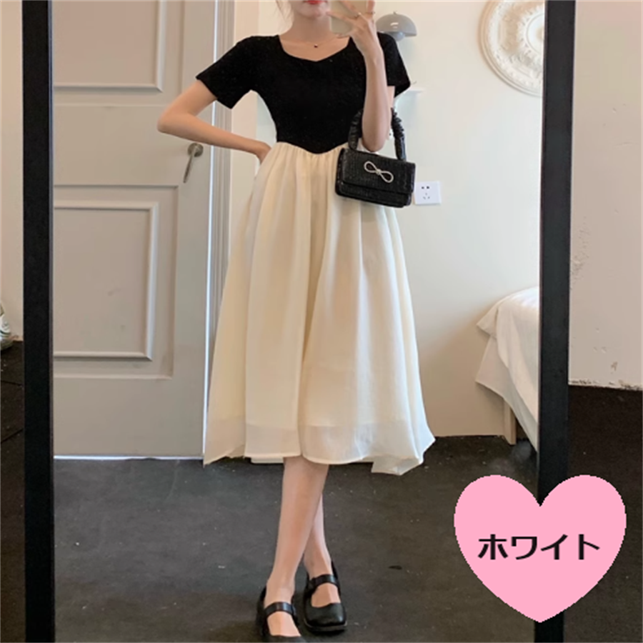 異素材ドッキングのロングワンピースです。
