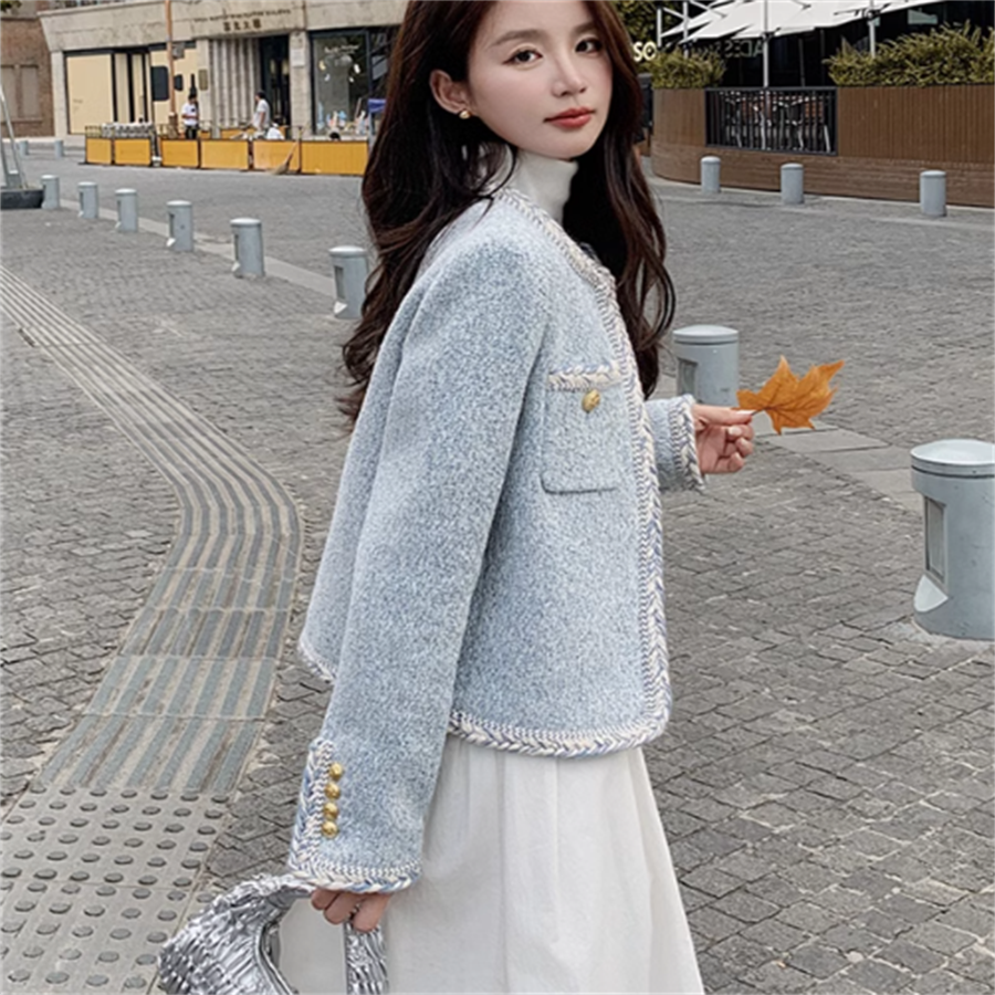 ツイード生地のノーカラージャケット
