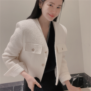 シンプルデザインのノーカラージャケットです