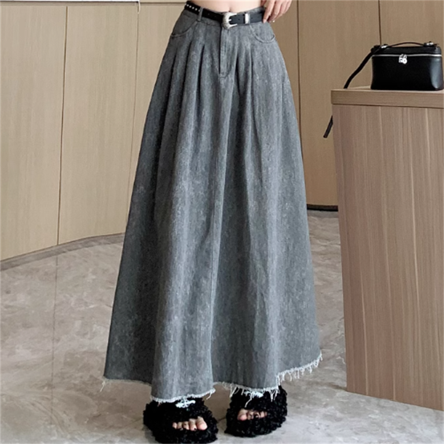 マキシ丈のデニムスカート