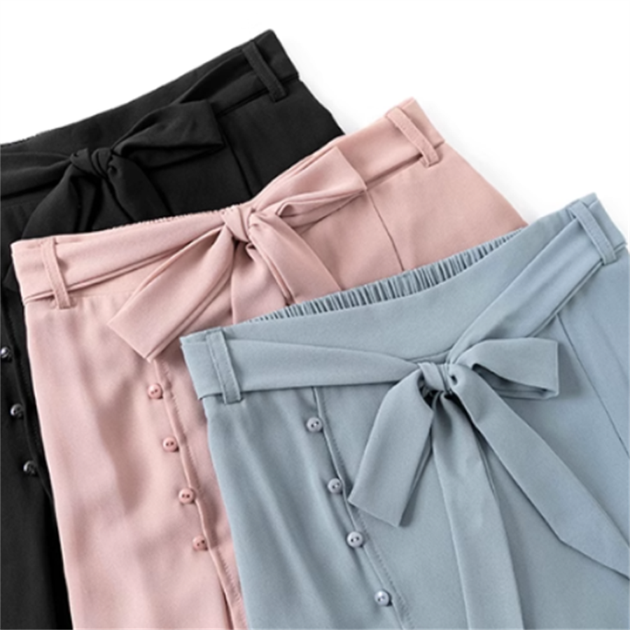 リボン付きのハイウエストで腰の位置を高く見せることが出来ます♡