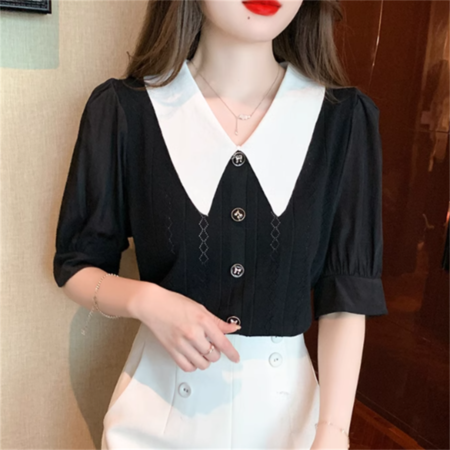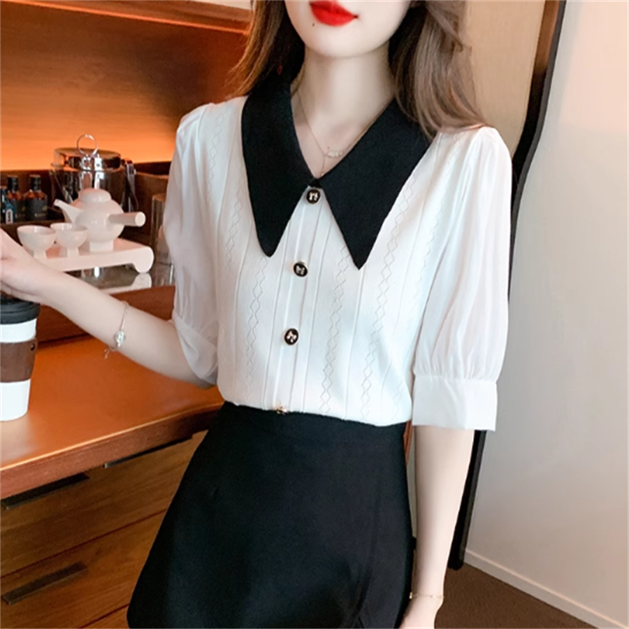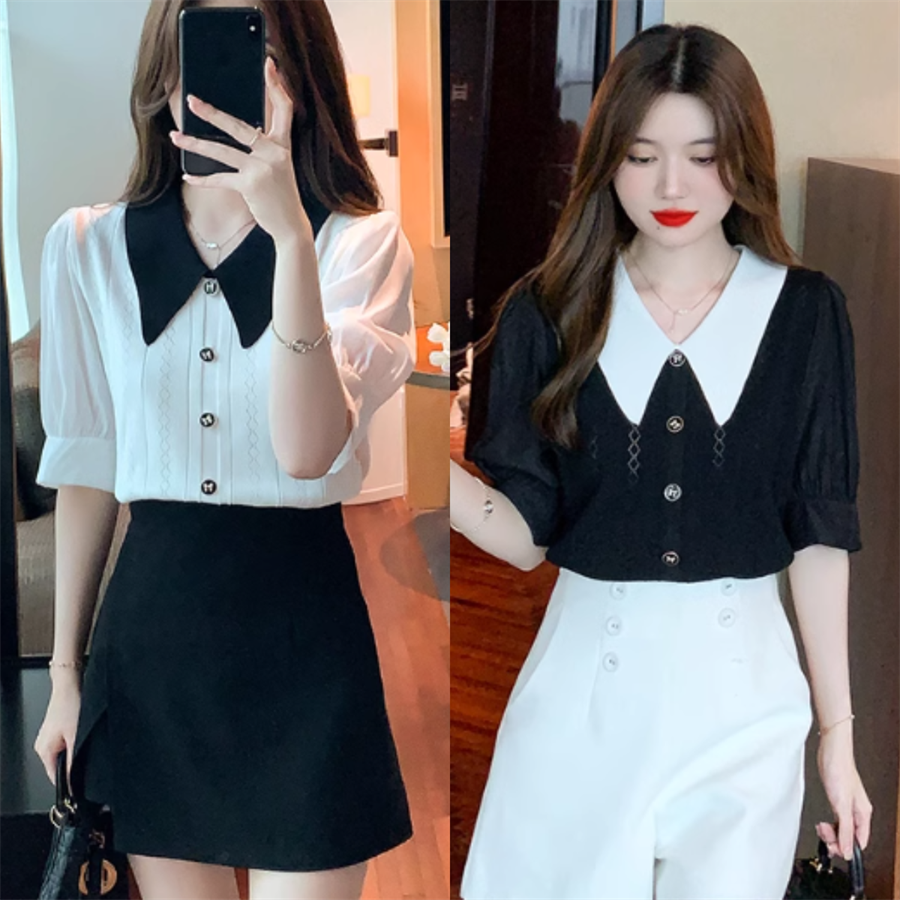 バイカラーの襟付きブラウスです