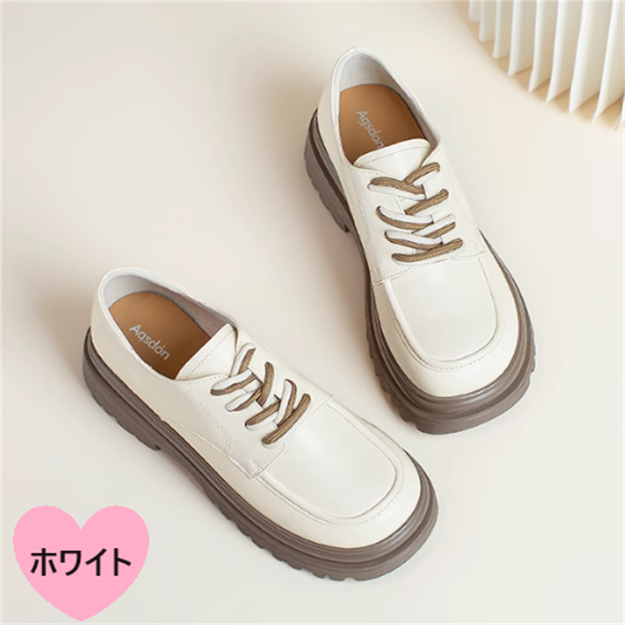 レースアップが目を引くローヒールローファーです。