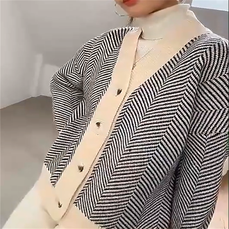 ボーダー柄のニットカーディガンです。