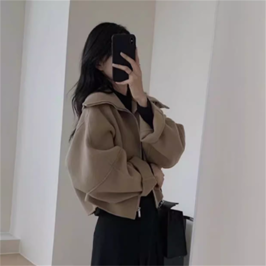 大きめ襟の長袖ジャケットです。