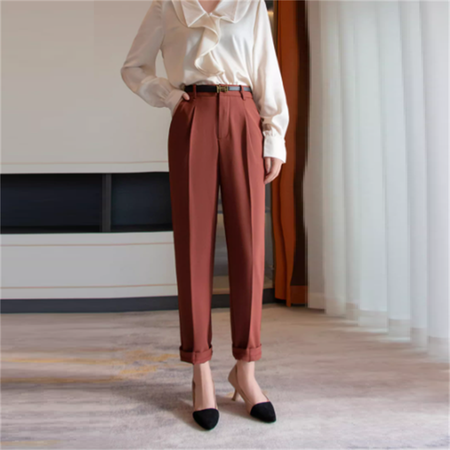 シンプルデザインのスラックスパンツです。