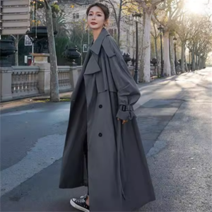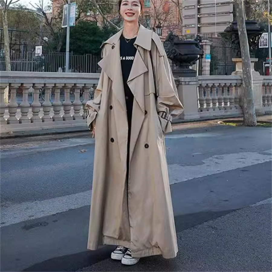 マキシ丈丈のトレンチコートです。