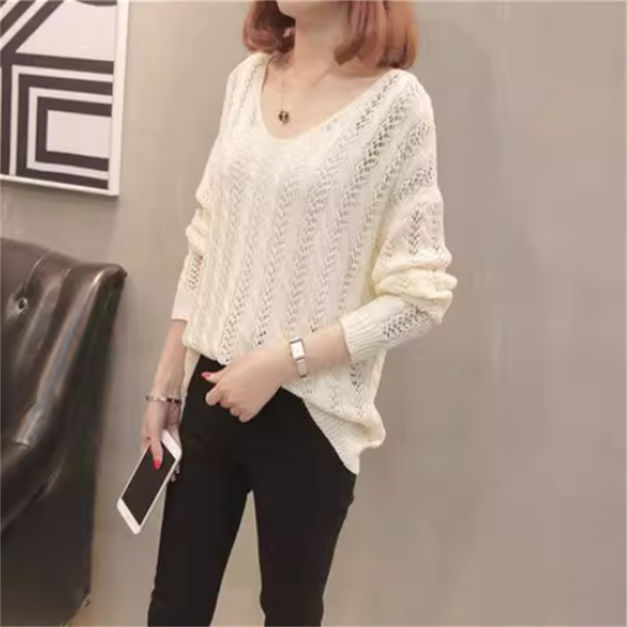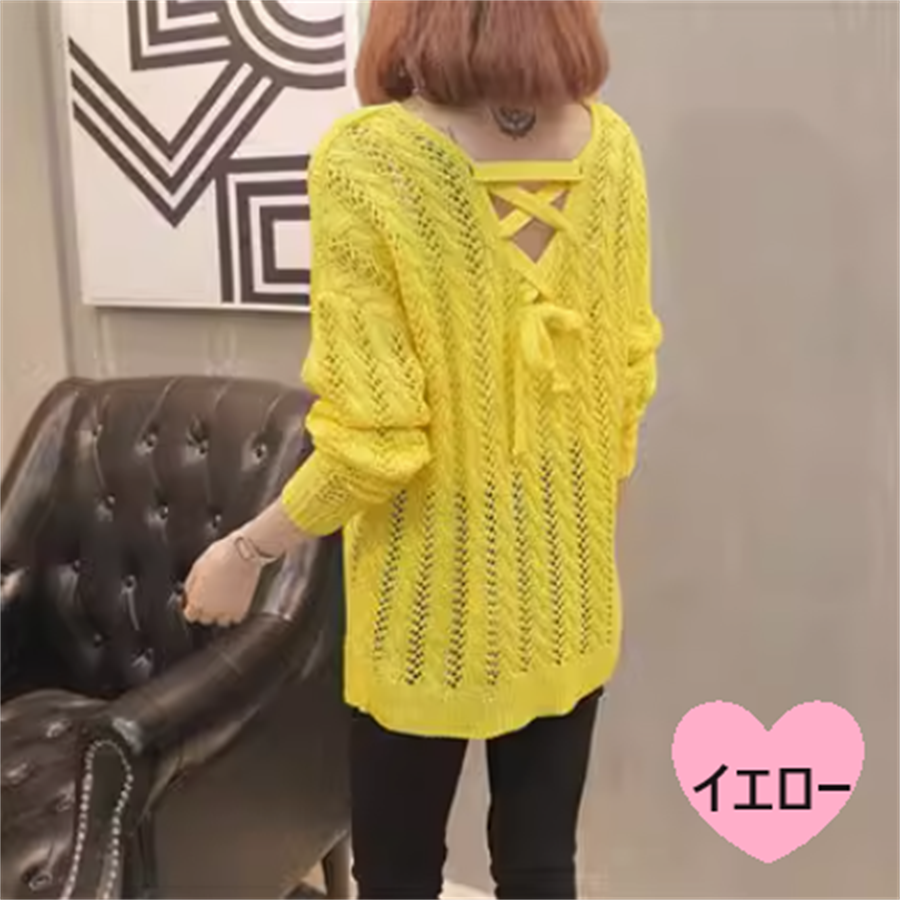 透け感が可愛いかぎ編みニットセーターです。
