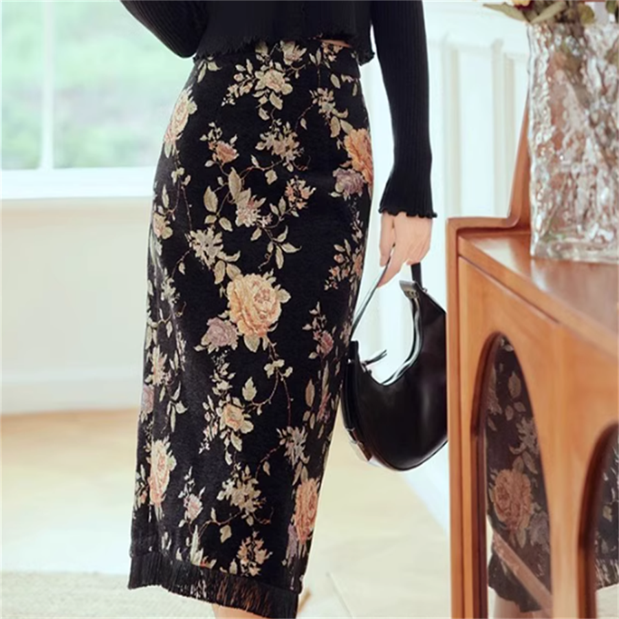 花柄デザインのペンシルスカートです。