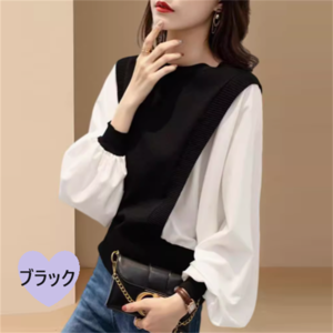 異素材ドッキングのニットブラウスです。