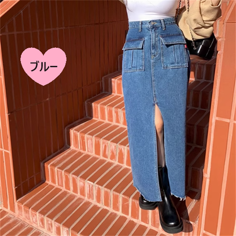 スリット入りのデニムスカートです。