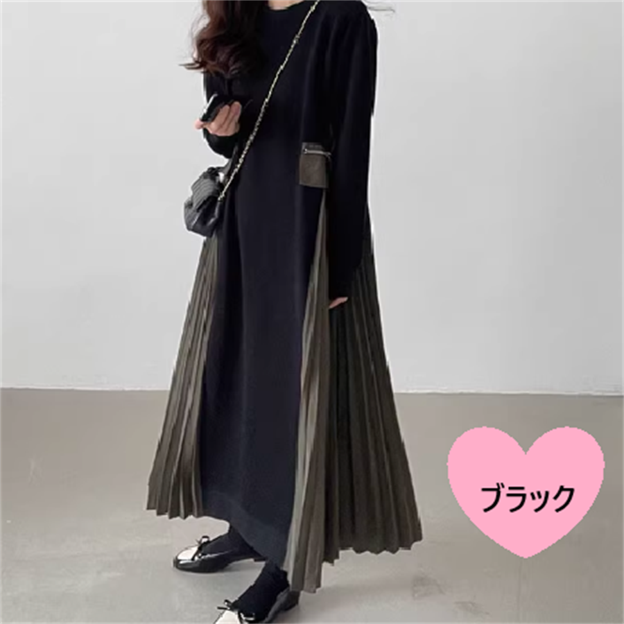 バイカラーのマキシ丈ワンピースです。