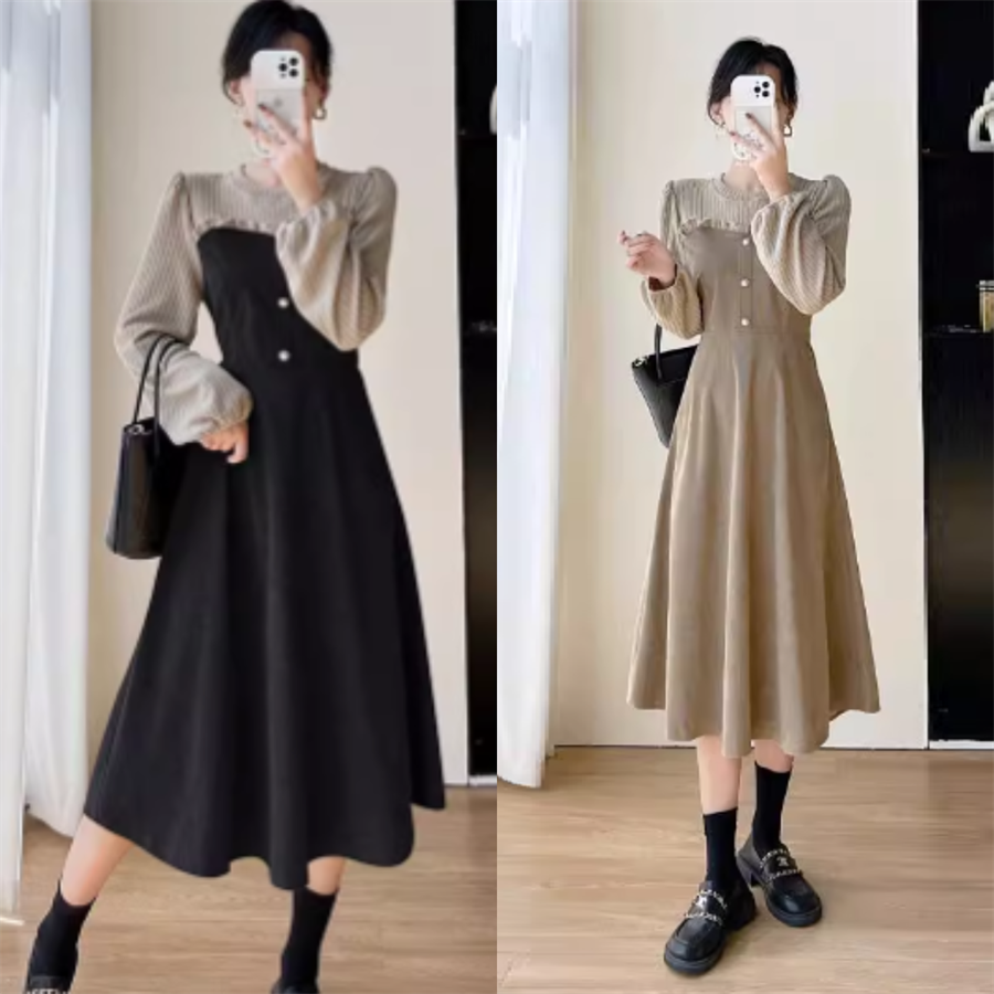 ニットセーターとのレイヤード風コーデを楽しめます。