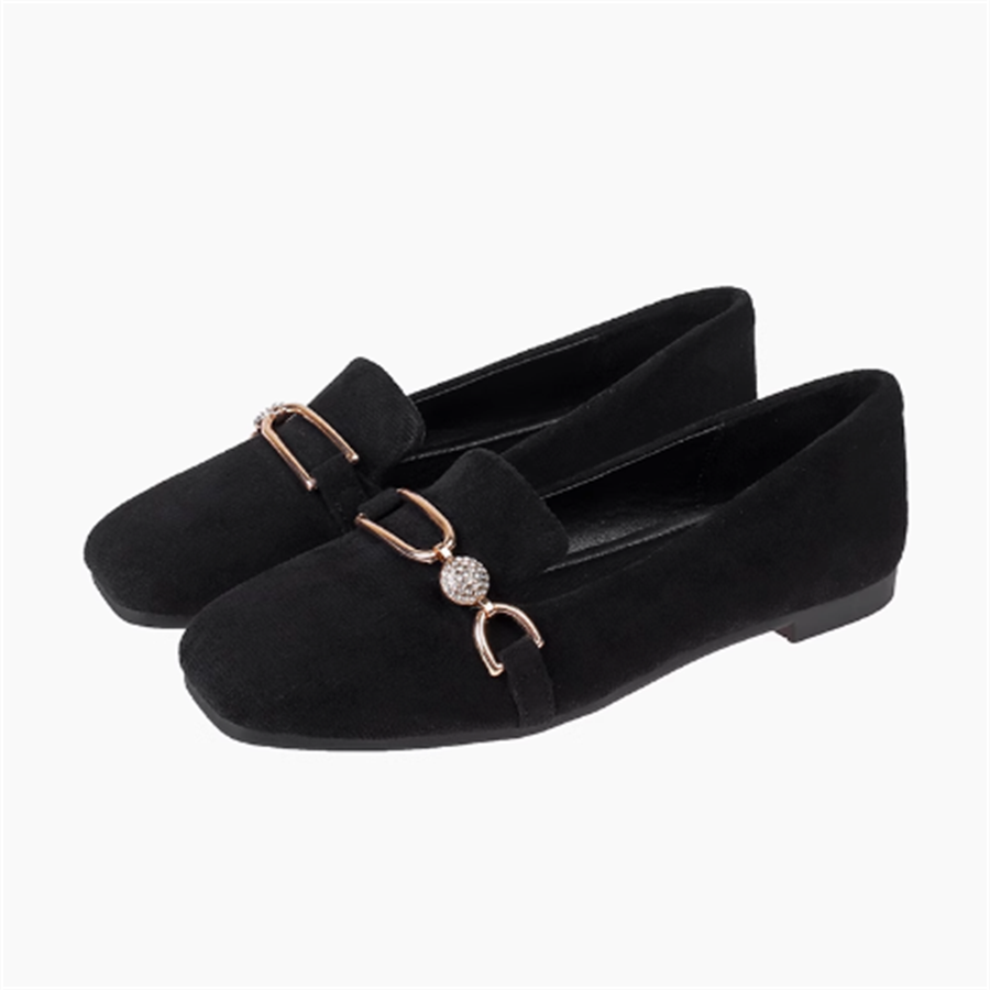 パール装飾のローヒールパンプスです。
