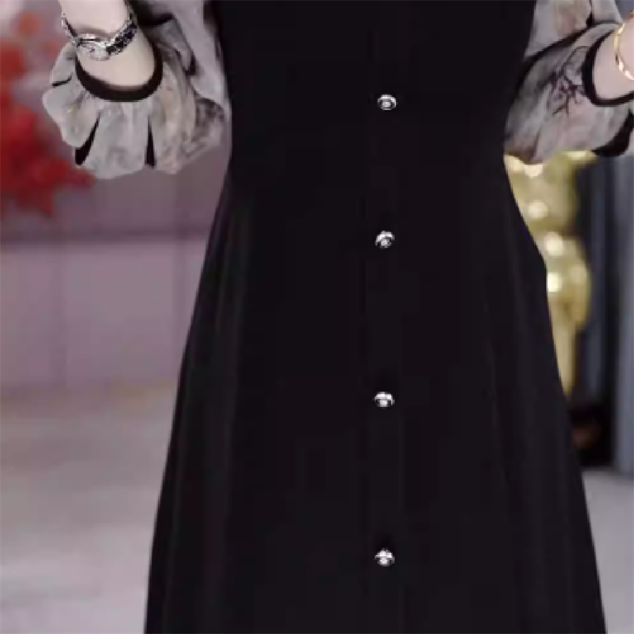 異素材ドッキングのロングドレスです。