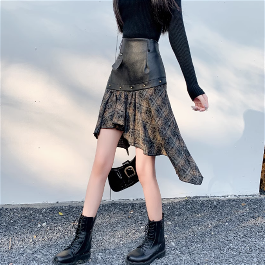 アシンメトリー丈のチェック柄スカートです。