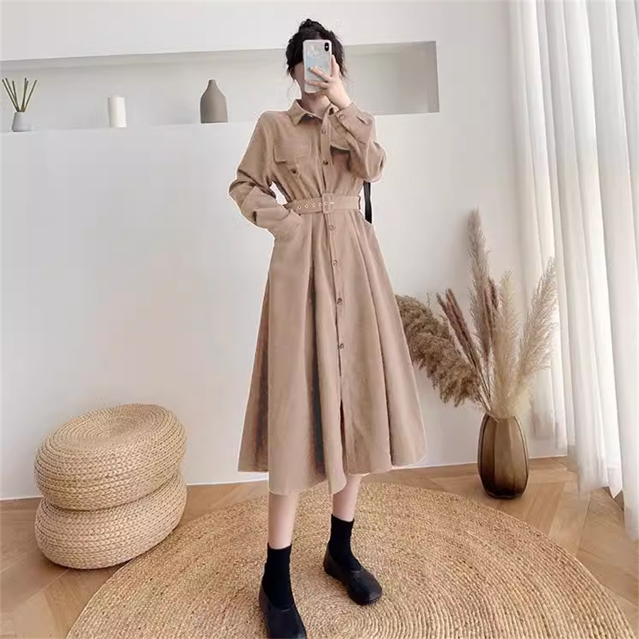 ベルト付きのロングワンピースです。