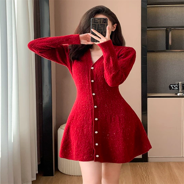 ケーブルニットのミニワンピです。