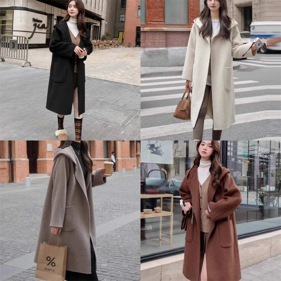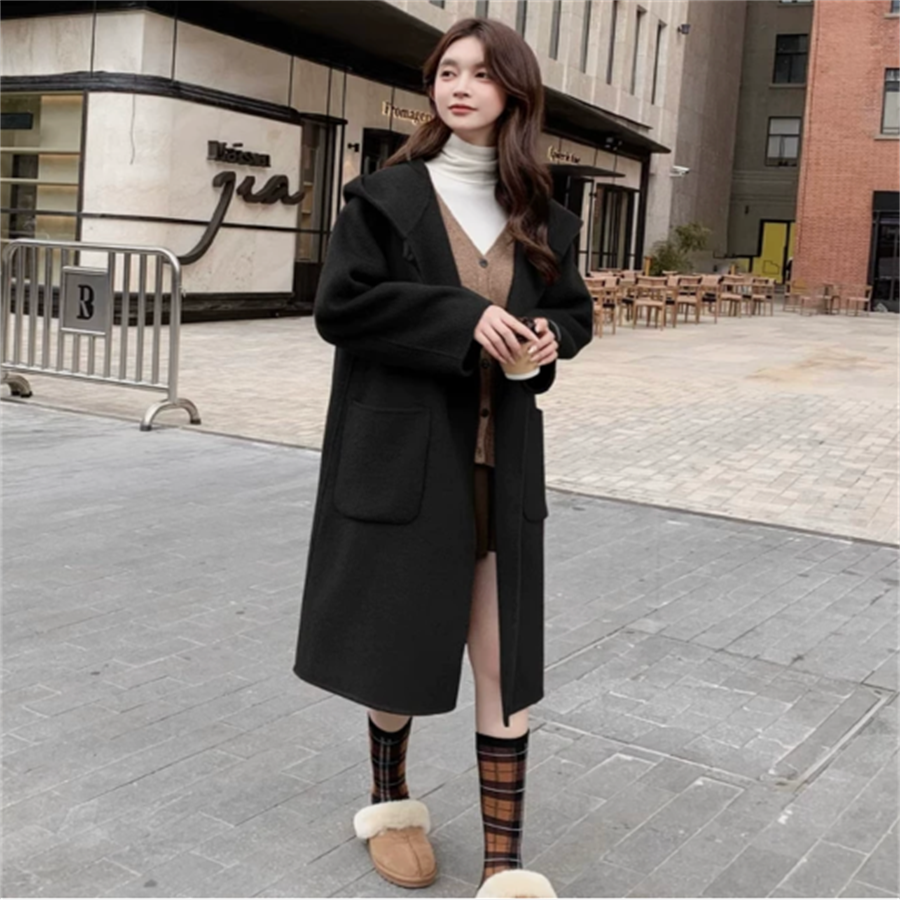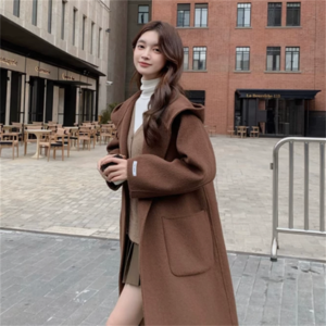 フード付きのチェスターコートです。