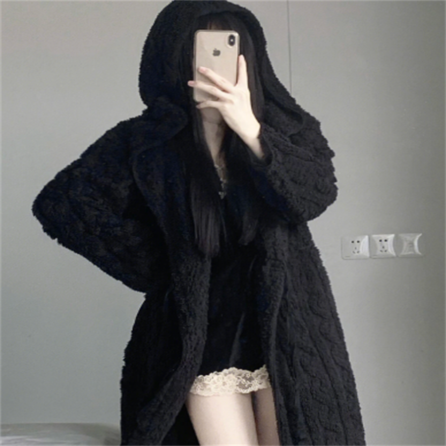 ベロア生地のフード付きガウンです。