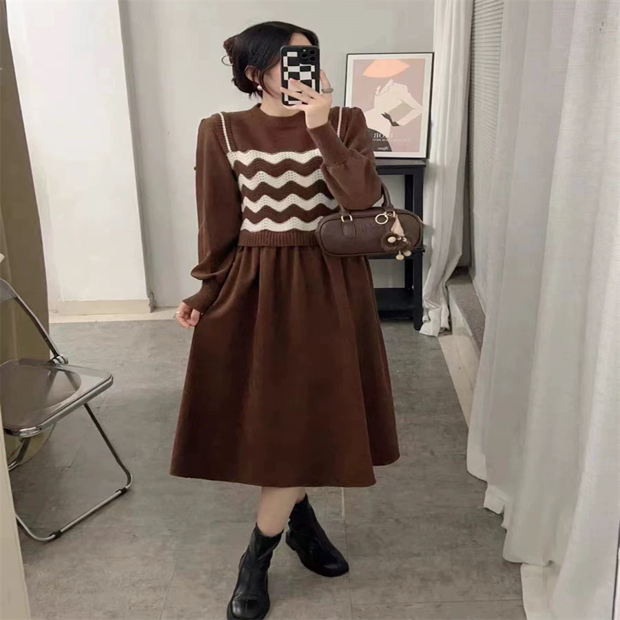 ボーダー柄ののニットワンピ