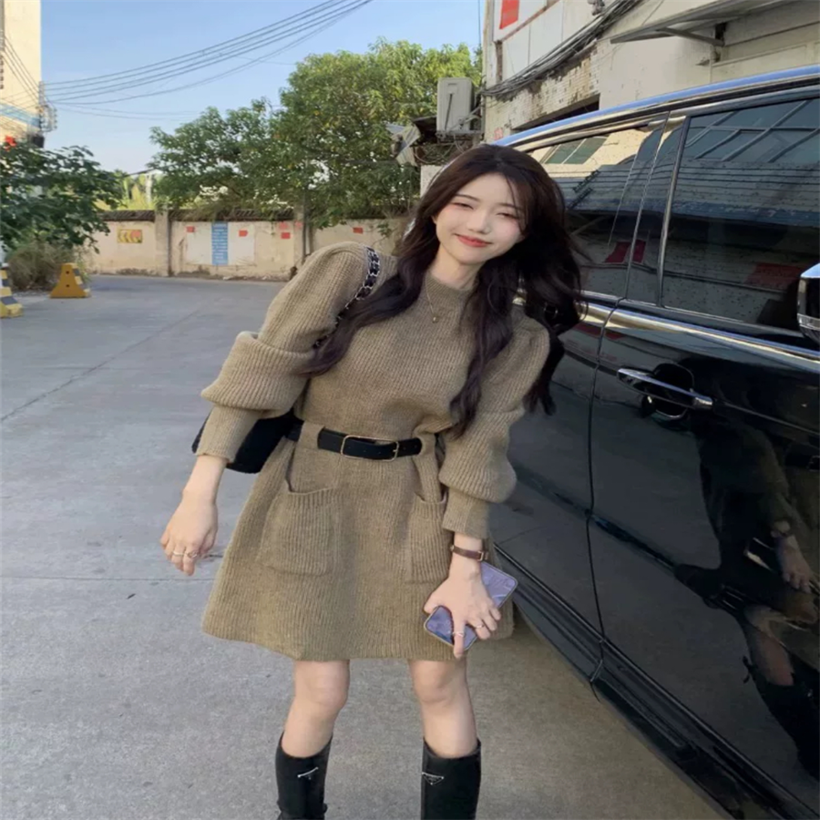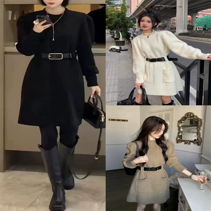 ニット生地のミニワンピです