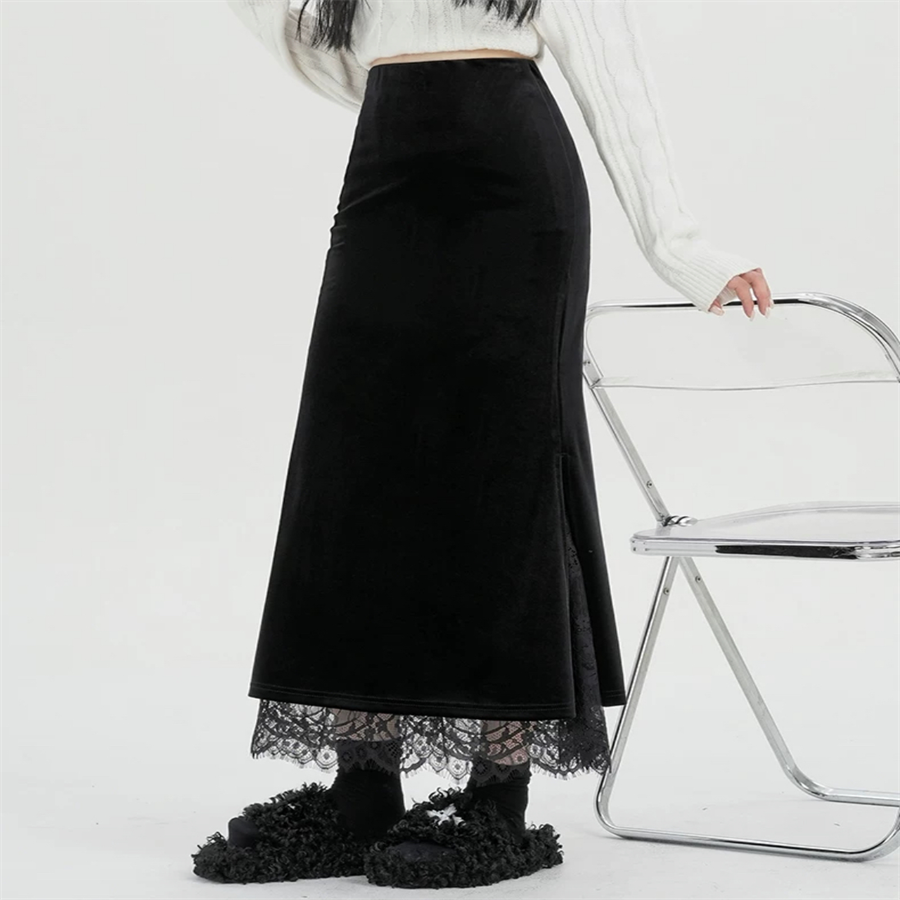 マキシ丈のベロアスカートです