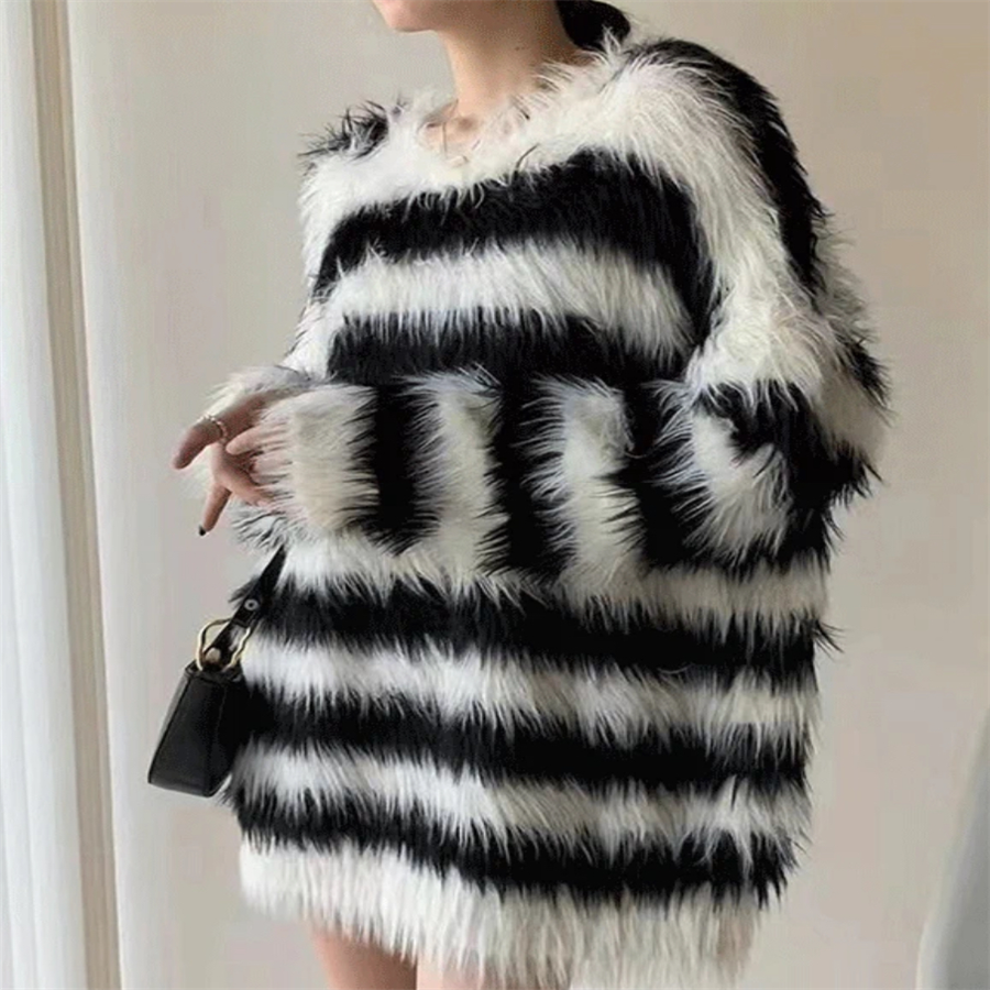 ボーダー風のモヘアニット