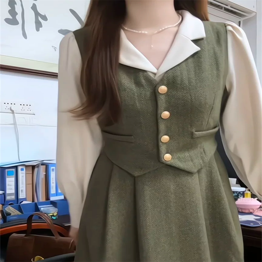 1着でベストとスカートのコーデが完成します